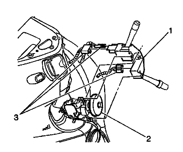 5. Disconnect the electrical connectors (3) from the multifunction switch (1).