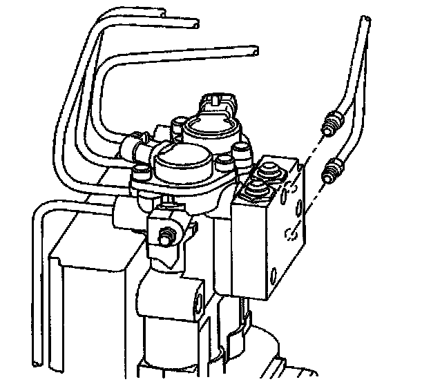 13. Relocate the bleeder hose to the forward brake modulator bleeder valve.