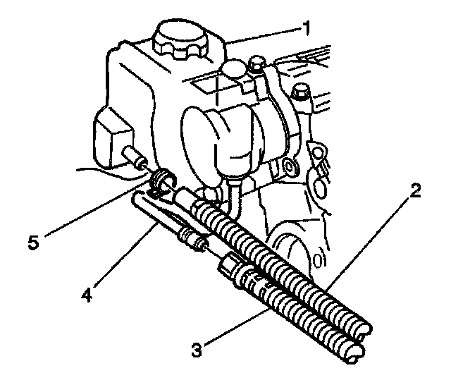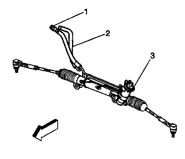 2. Remove the power steering pressure hose (1) from the power steering gear (3).