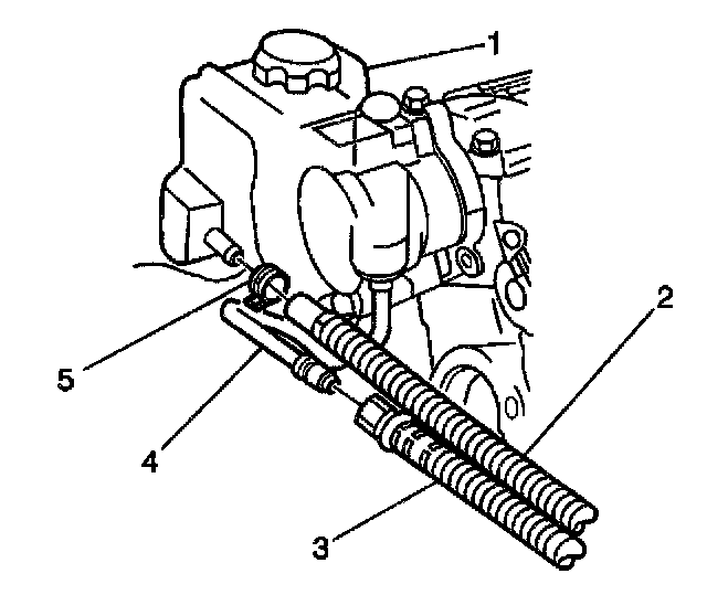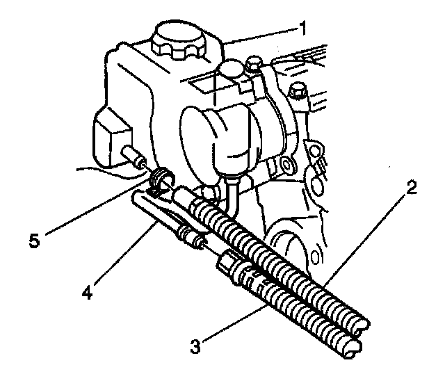 4. Remove the power steering pressure hose (1) from the power steering gear (3).