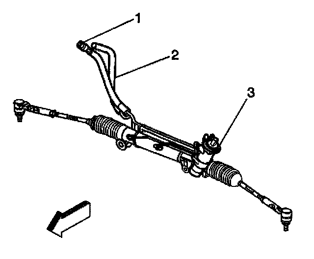 5. Remove the power steering return hose (2) from the power steering gear (3).