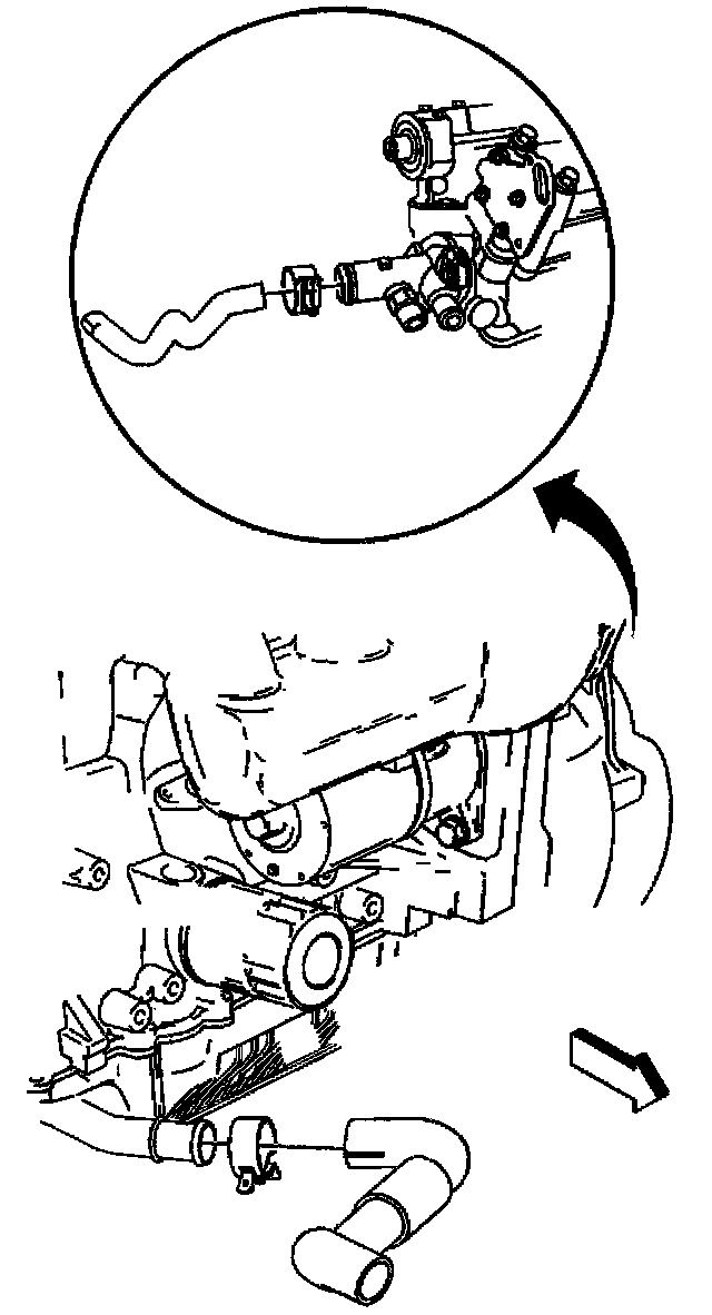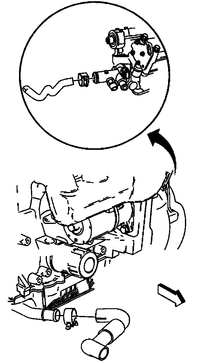 4. Disconnect the radiator inlet hose from the radiator and the engine coolant outlet.