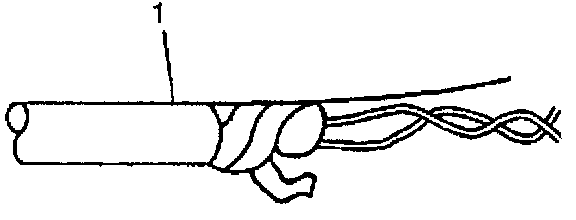 ^ Use caution not to wrap the drain wire in the tape (1).