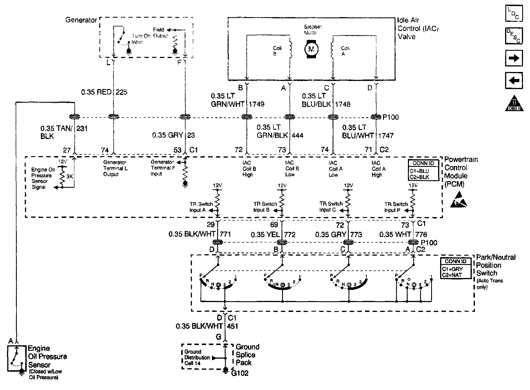 Engine Controls Schematics: Oil Pressure Sensor, IAC, PNP, And Generator: