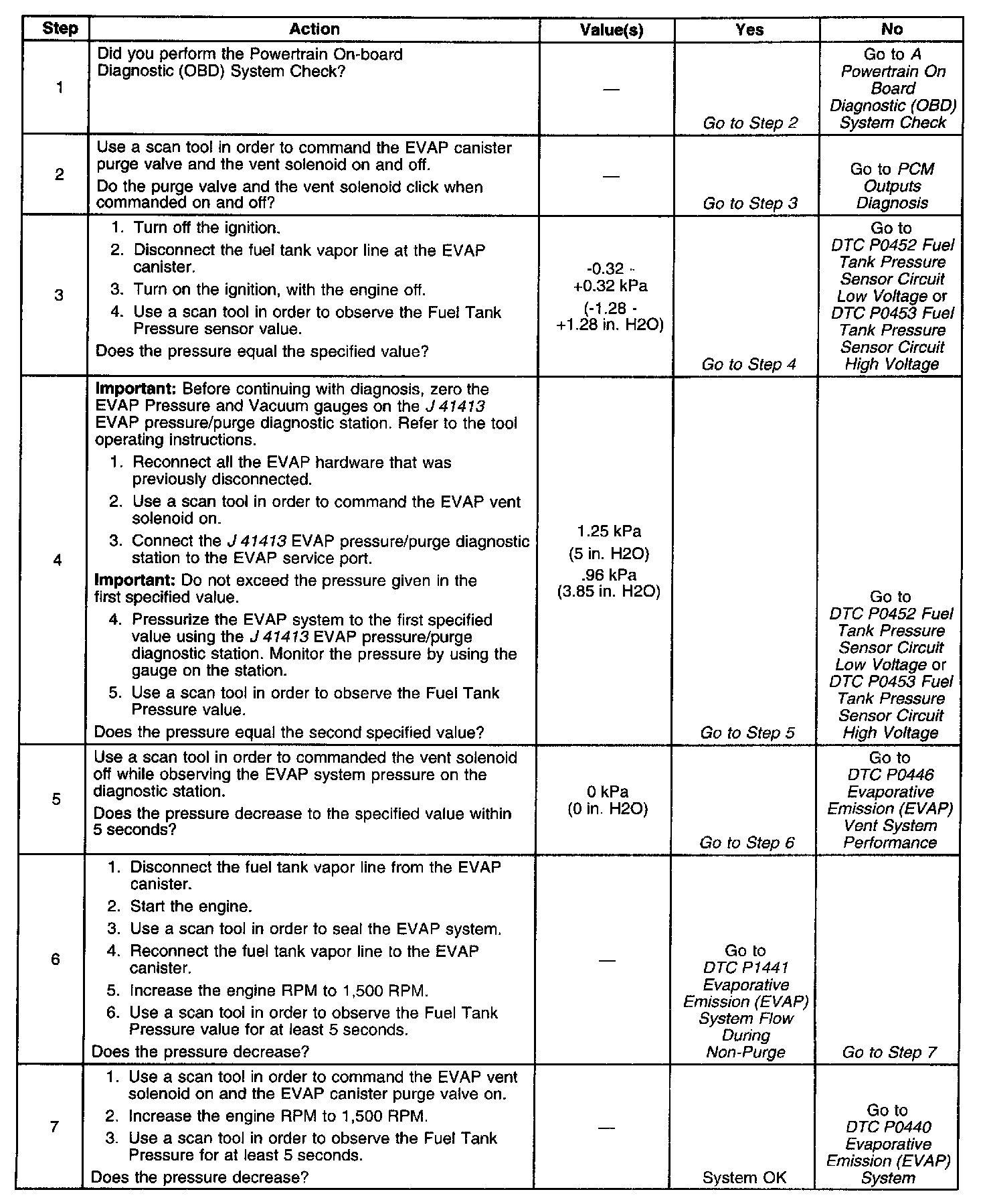^ The fuel tank vapor pressure sensor operation is covered and diagnosed in DTCs P0440, P0442, P0446, P0452, P0453, P1441 and in the Evaporative Emission System Check.