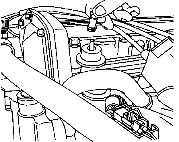 8. Remove the fuel inlet pipe at the fuel rail. Use a backup wrench on the fuel rail inlet fitting to prevent the fitting from turning.