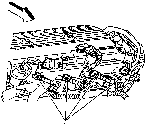 7. Remove the injector connectors (1).