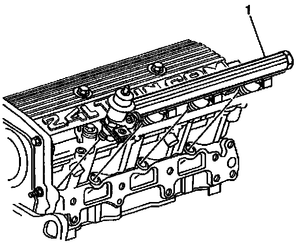 12. Lift the fuel rail assembly (1) from the cylinder head.