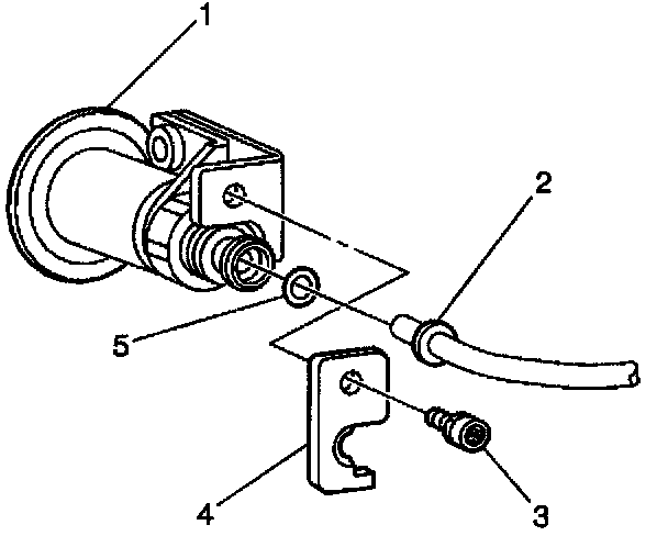 15. Remove the inlet and the return pipe assemblies. Discard the O-ring (5).