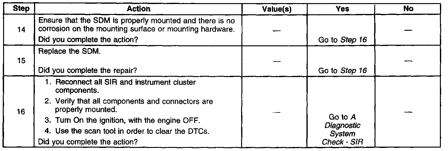 The loss of serial data communication between the SDM and the instrument cluster will cause the AIR BAG warning lamp to come ON solid. Refer to A Diagnostic System Check - Data Link Communications in Data Link Communications.