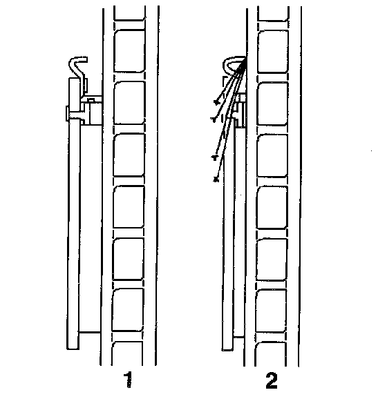 ^ Both front and rear disc brakes have wear indicators that make a noise when the pads wear below specifications. The wear indicator is an integral part of the outer pad. When the pad is worn the wear indicator contacts the rotor and produces a warning noise as indicated in the illustration above.