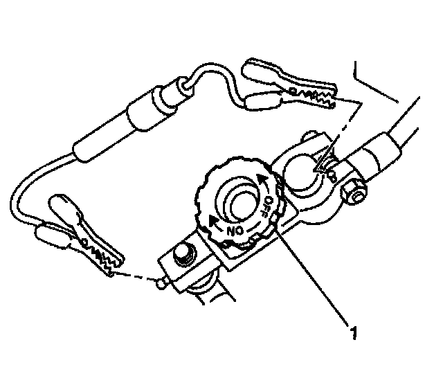 9. Turn the J 38758 knob to the OFF position. The current flows through the jumper wire.