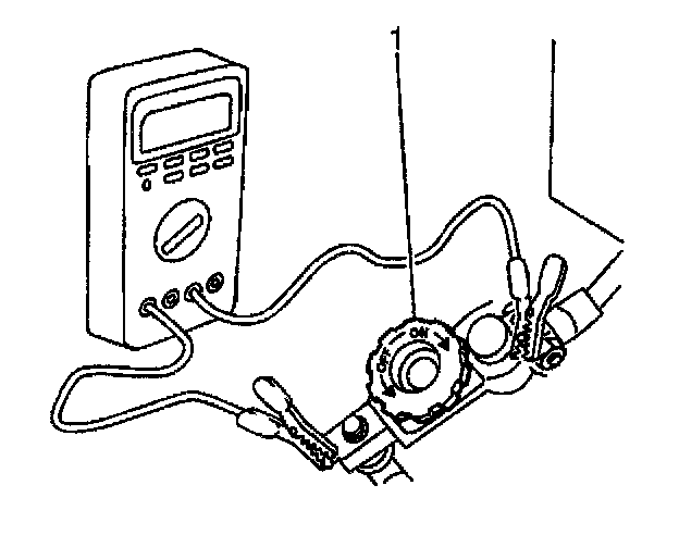 ^ When there is a current reading of 2 A or less, turn the J 38758 knob to the ON position. The electrical current will now pass through the switch.