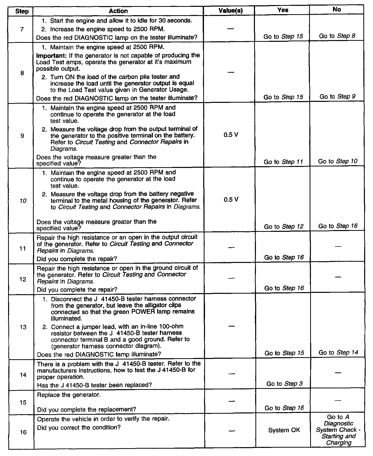 It the test has shown the generator to be OK however the condition remains, test the PCM or its control circuit(s) to the generator.