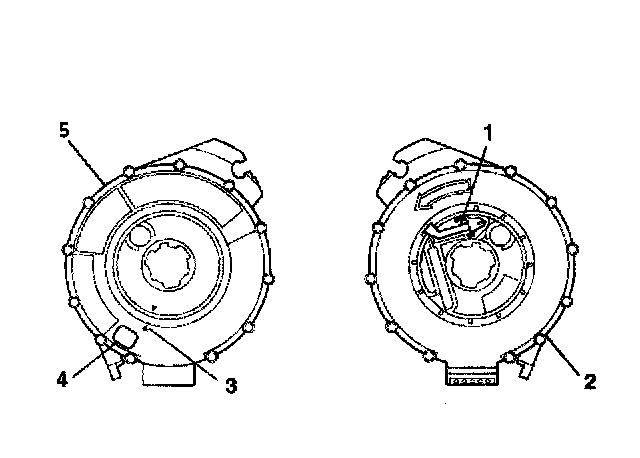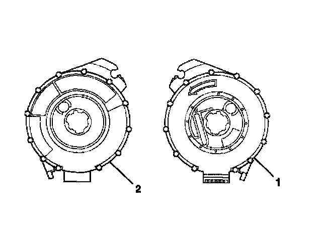 5. For no centering window on the front side (2) of the SIR coil assembly and no spring service lock on the back side (1), perform the following steps: