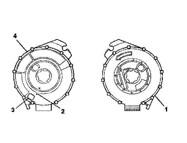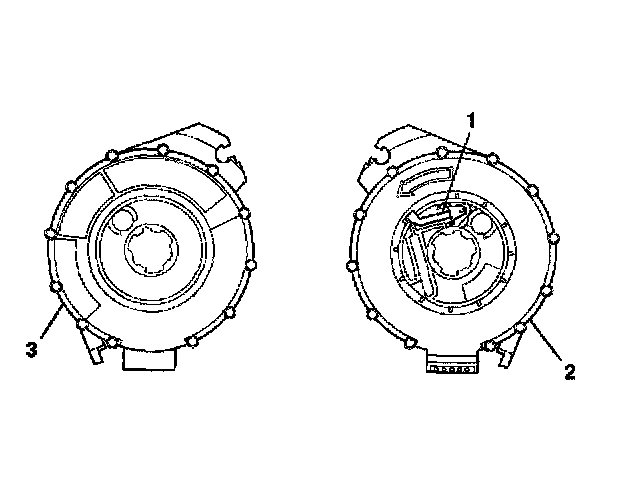 4. If no centering window is present on the front side (3) of the SIR coil assembly, but a spring service lock (1) is on the back side (2), perform the following steps: