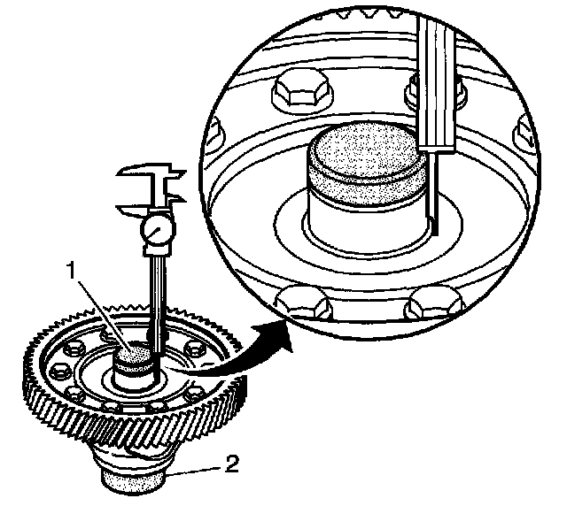 6. Extend the gauge rod on the J 44388-1 until it is bottomed on the output shaft gear thrust washer.