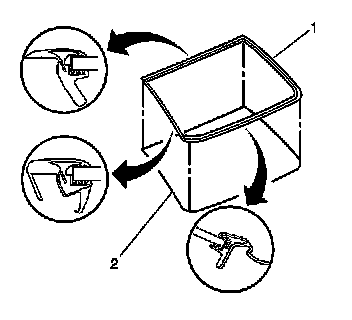 11. Start from the center and hand press the rear window reveal molding (1) onto the rear window (2).