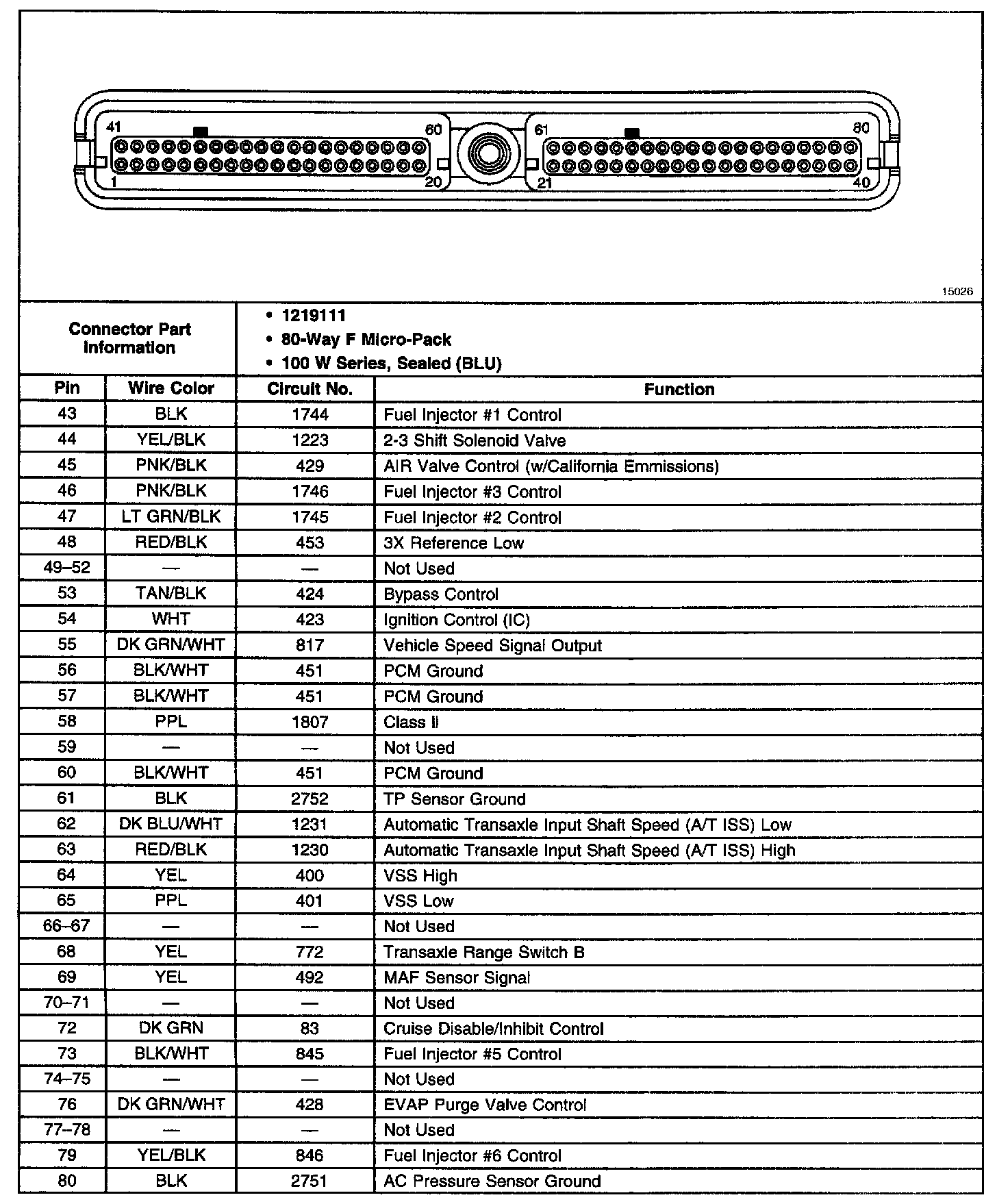 Powertrain Control Module (PCM) Connector C1 (Part 2 Of 2):