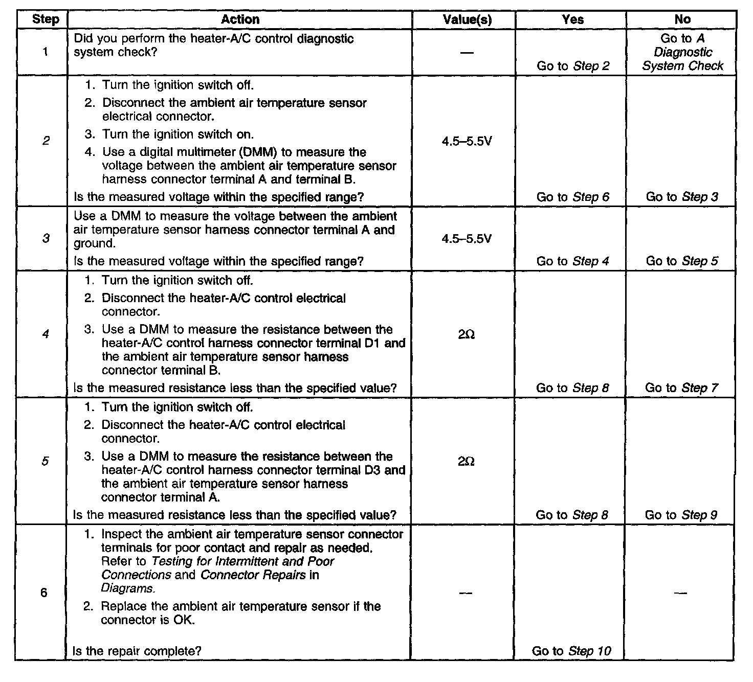 2. This step checks for proper voltage value at the ambient air temperature sensor.