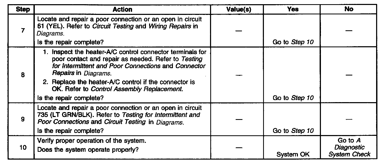 3. This step determines whether circuit 61 (YEL) or circuit 735 (LT GRN/BLK) is open.