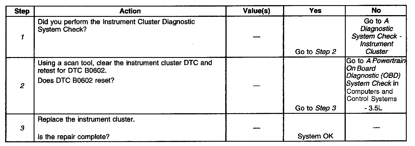 ^ The instrument cluster stores DTC B0602 in memory.