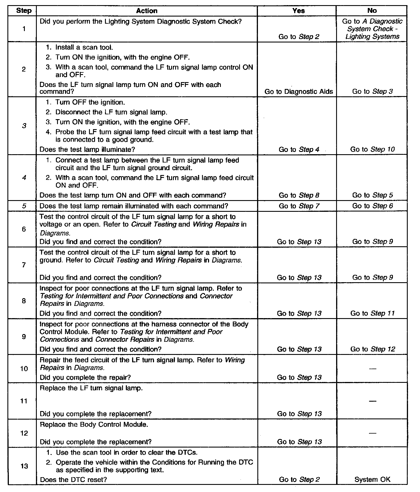 ^ The BCM detects a short to battery in the LF turn signal lamp circuit.