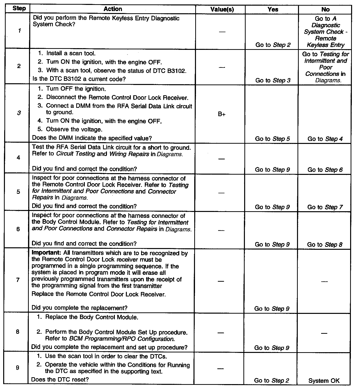 B3102 KEYLESS ENTRY DATA LINK CIRCUIT LOWDiagnostic Chart: