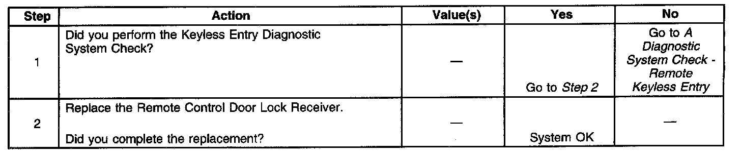 B3106 KEYLESS ENTRY DATA LINK PARITY ERRORDiagnostic Chart: