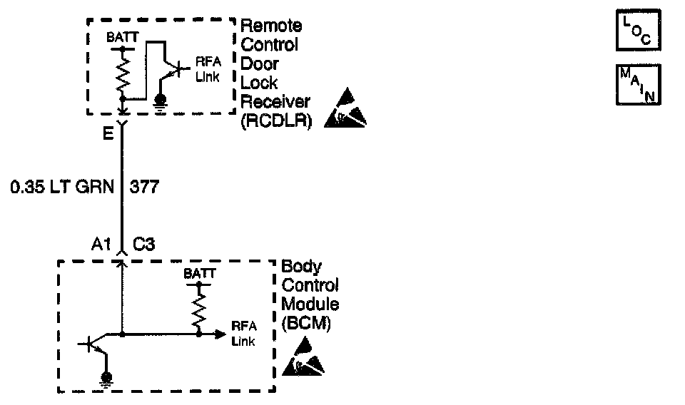 The Body Control Module (BCM) is connected to the Remote Control Door Lock Receiver by a communication circuit. This circuit is the Serial data link for communication between the two modules. The BCM checks each message received from the Remote Control Door Lock Receiver for validity (Parity).