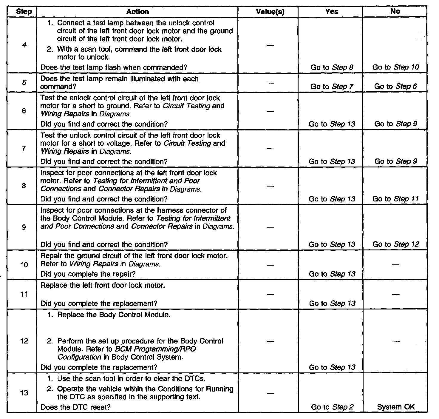 4. Tests for an open in the ground circuit to the left front door lock motor.