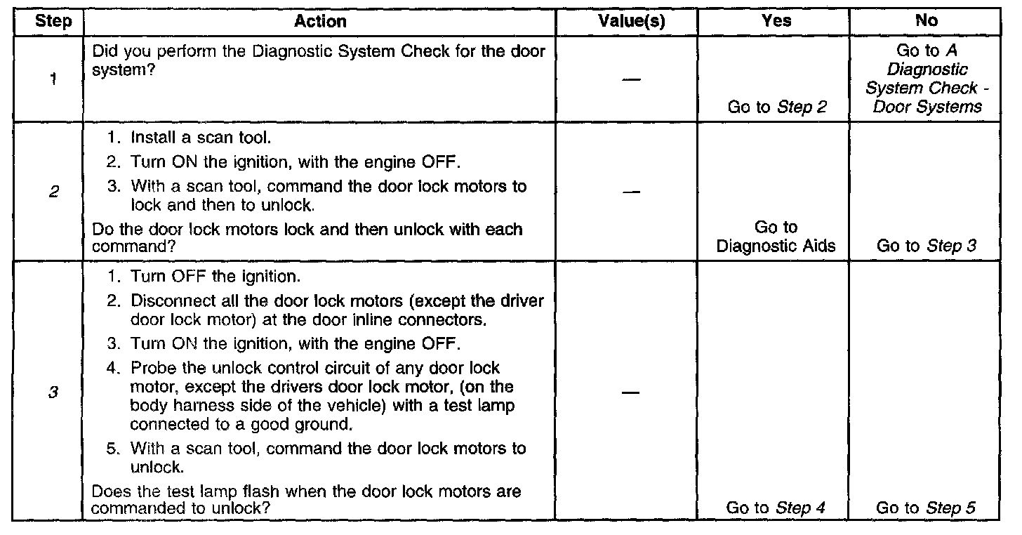 3. Verities that the Body Control Module is providing voltage to the door lock motors. Check the door lock fuse before this step is performed.