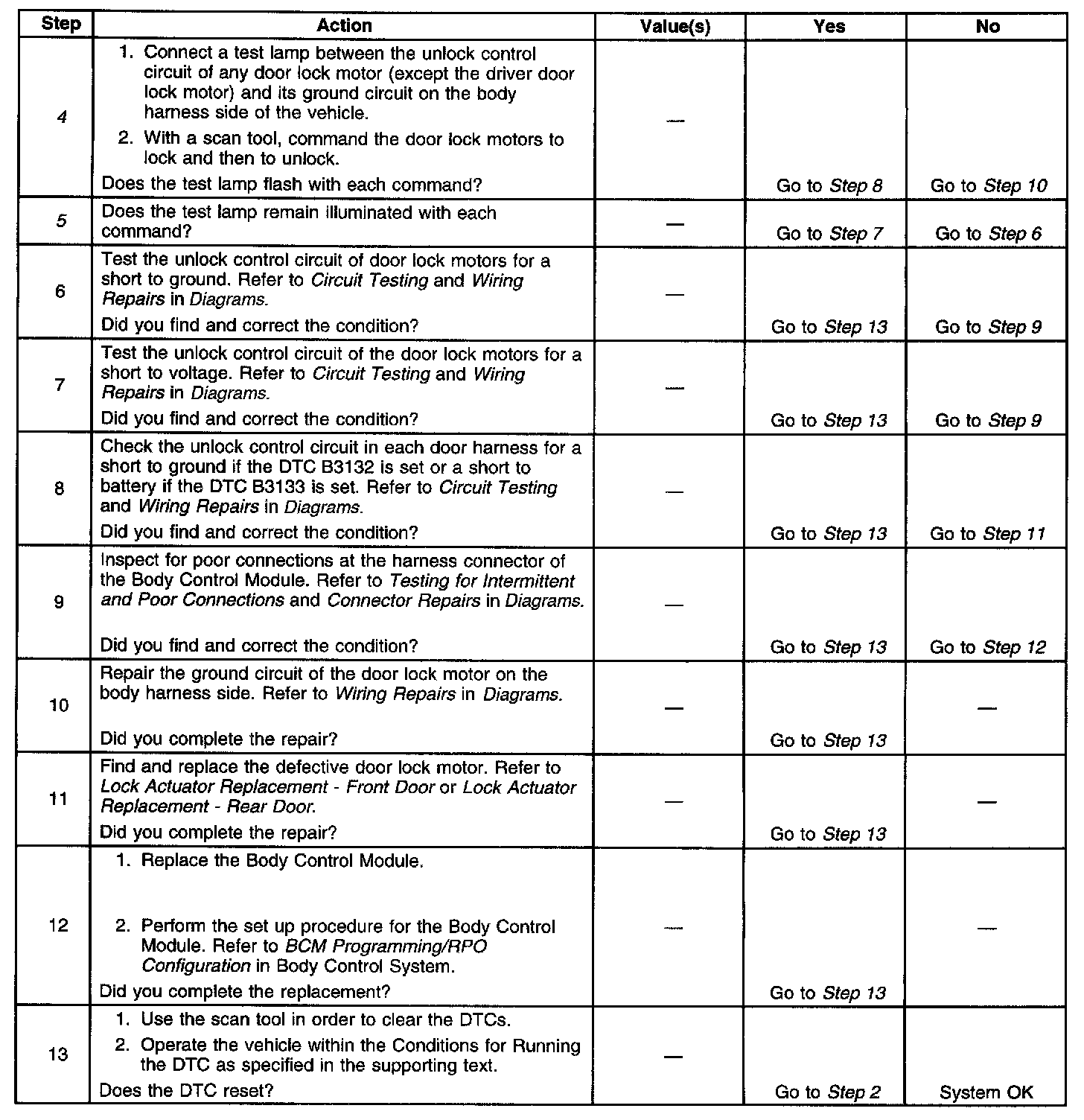 4. Tests for an open in the ground circuit to the door lock motors.