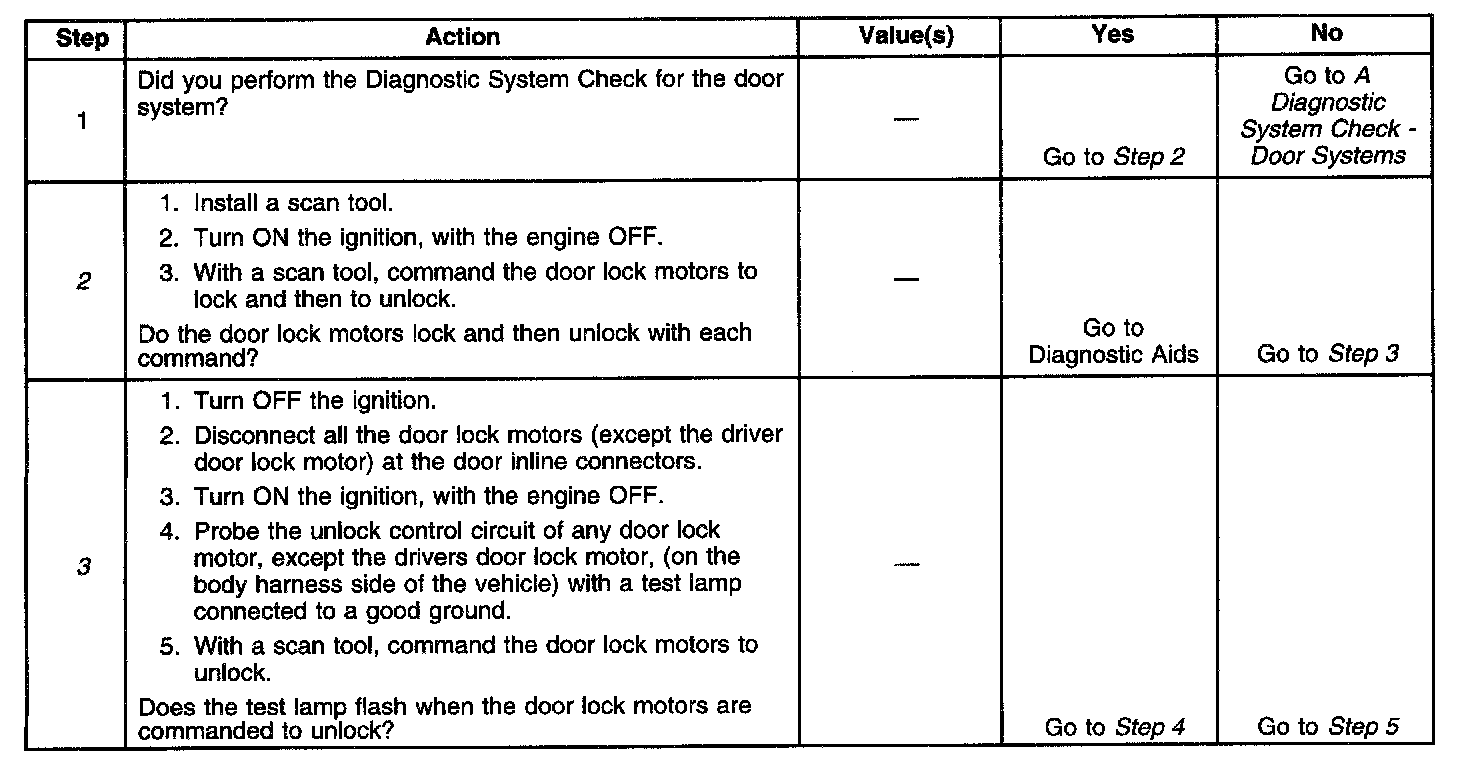 3. Verifies that the Body Control Module is providing voltage to the door lock motors. Check the door lock fuse before this step is performed.
