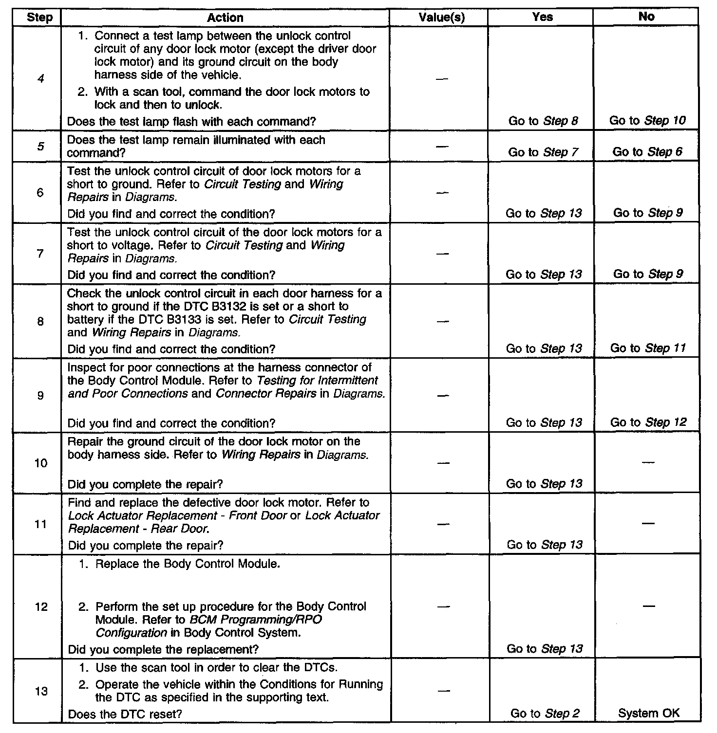 4. Tests for an open in the ground circuit to the door lock motors.