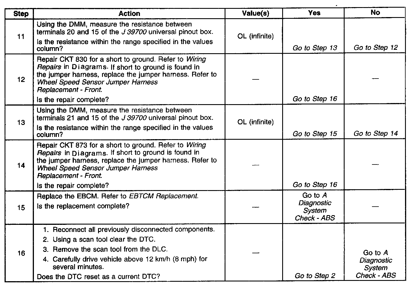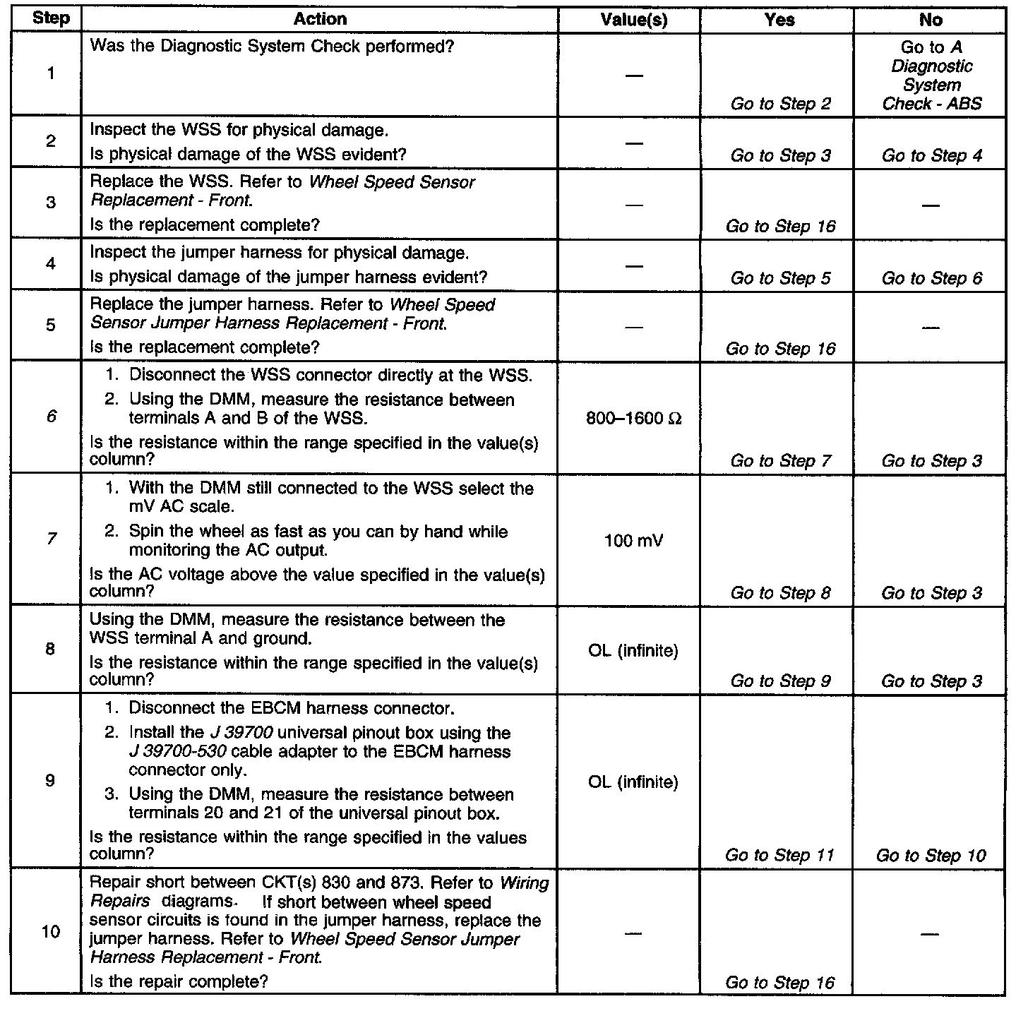 ^ The DTC will set if one wheel speed = 0 and the other WSS are greater than 40 km/h (25 mph) for 10 ms.