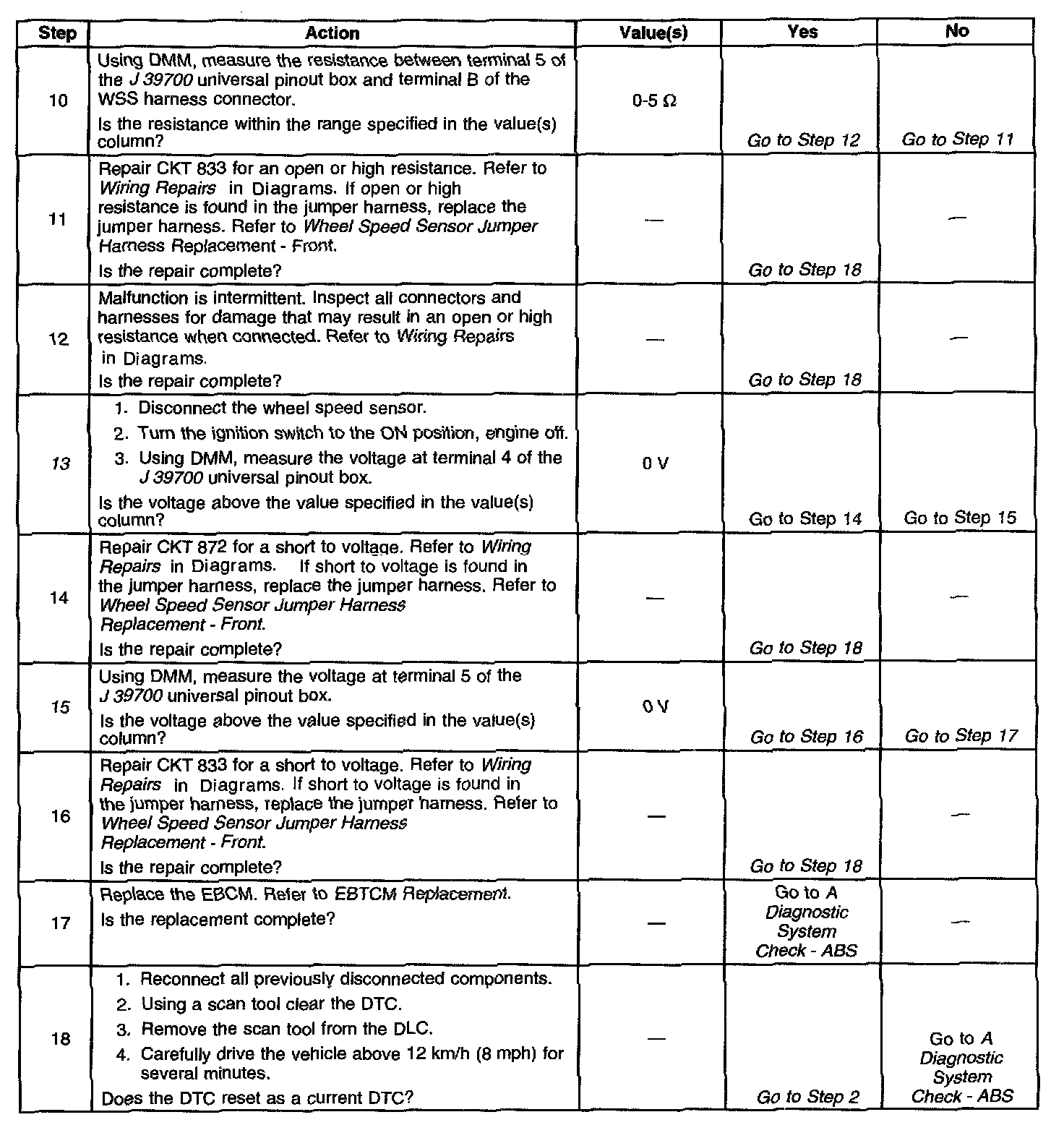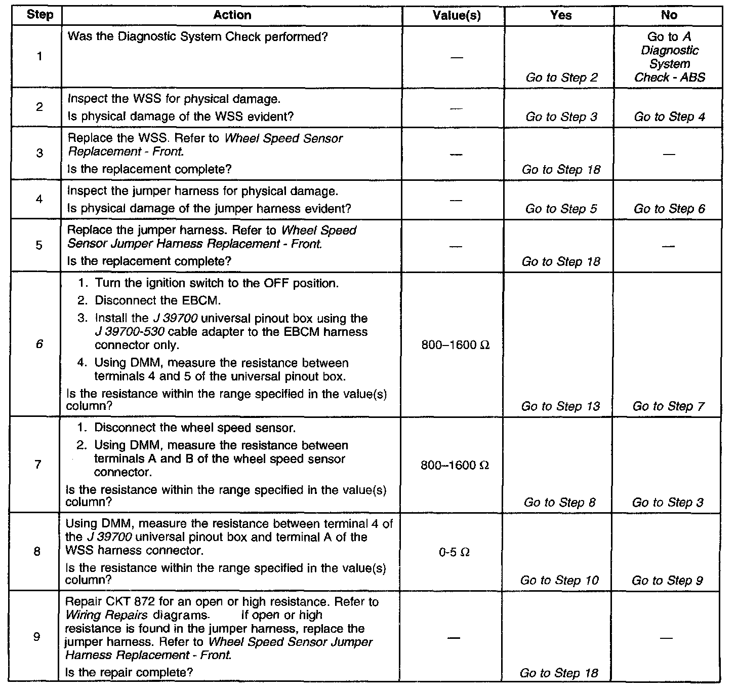 6. This step checks for an open in the WSS or WSS CKT.