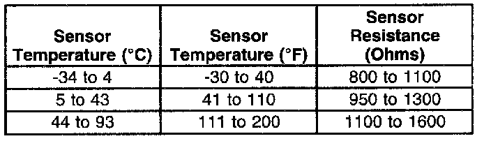 The following table contains resistance values for the front wheel speed sensors at varying sensor temperatures for use in diagnosis. The values are approximate and should be used as a guideline for diagnosis.