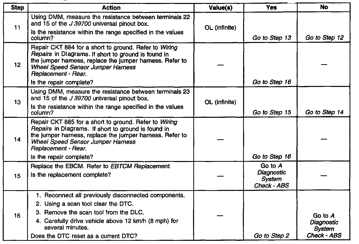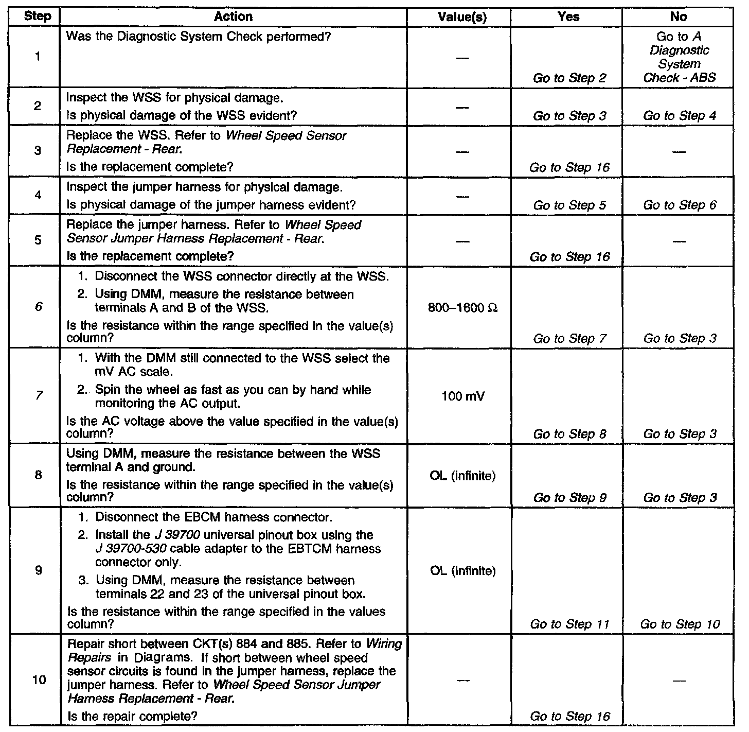 ^ The DTC will set if one wheel speed = 0 and the other WSS are greater than 40 km/h (25 mph) for 10 ms.