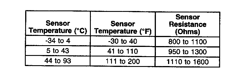 The following table contains resistance values for the rear wheel speed sensors at varying sensor temperatures for use in diagnosis. The values are approximate and should be used as a guideline for diagnosis.