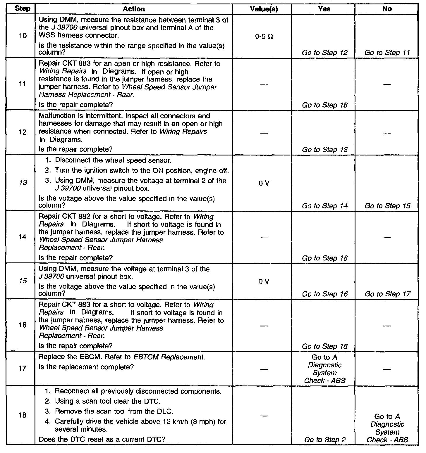 13. Checks for a short to voltage in the WSS CKT.