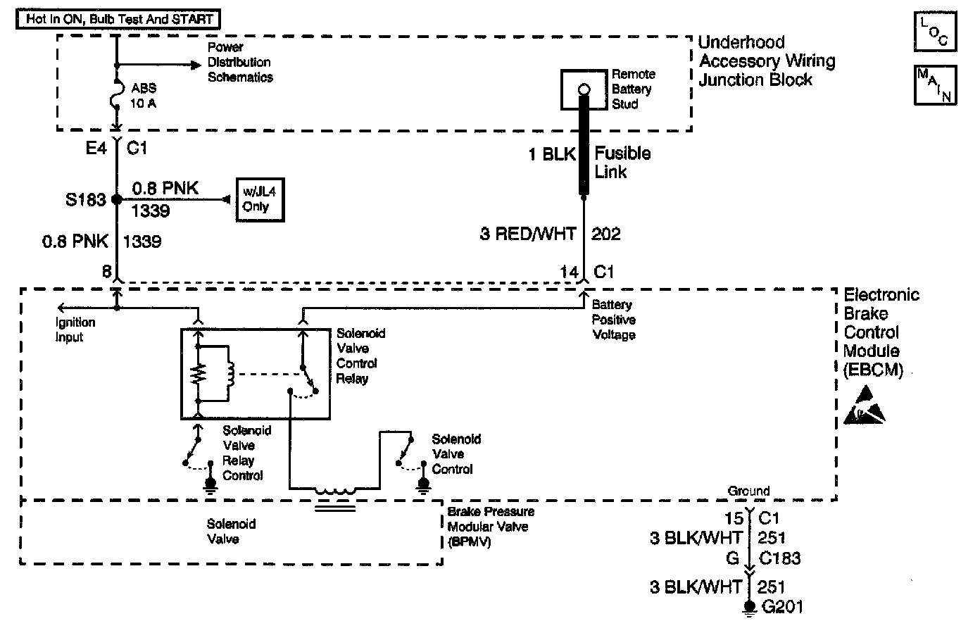 ^ The solenoid valve relay is an integral part of the EBCM and is not serviced separately.