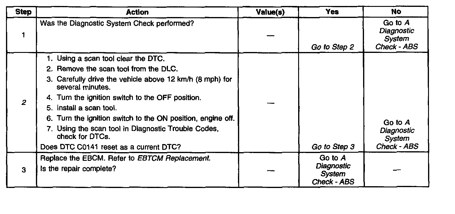 The solenoid valve circuit and the solenoid coil are internal to the EBCM. No part of the solenoid circuit is diagnosable external to the EBCM. The DTC sets when there is a malfunction in the solenoid circuit internal to the EBCM only.