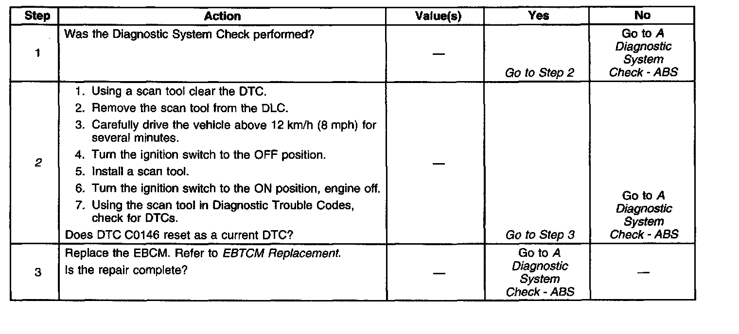 The solenoid valve circuit and the solenoid coil are internal to the EBCM. No part of the solenoid circuit is diagnosable external to the EBCM. The DTC sets when there is a malfunction in the solenoid circuit internal to the EBCM only.