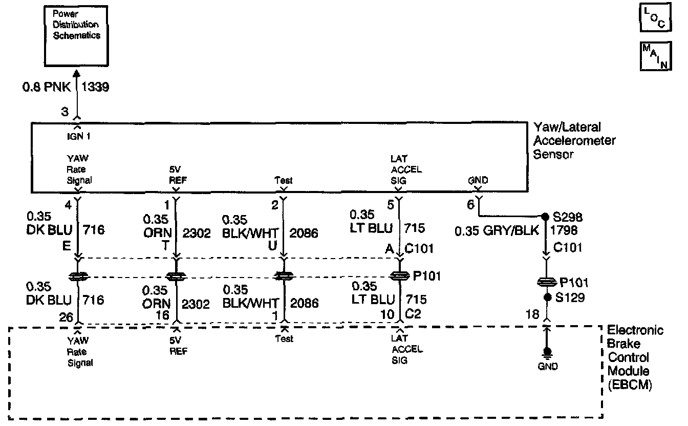 3. Checks for specified voltage on the lateral accelerometer signal circuit.