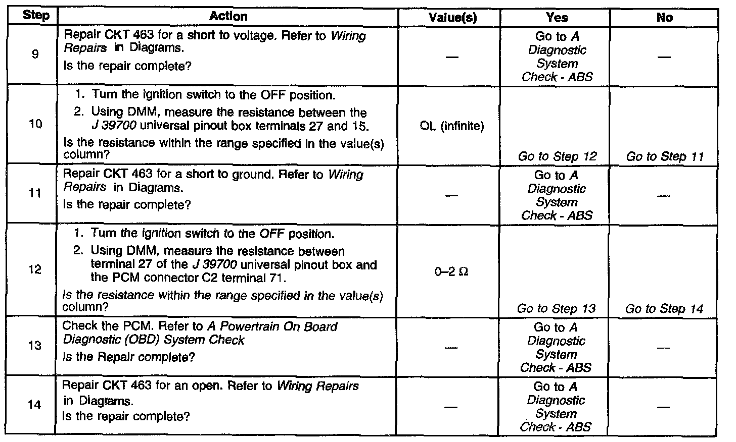 - CKT 463 has a wiring problem, terminal corrosion, or poor connections.