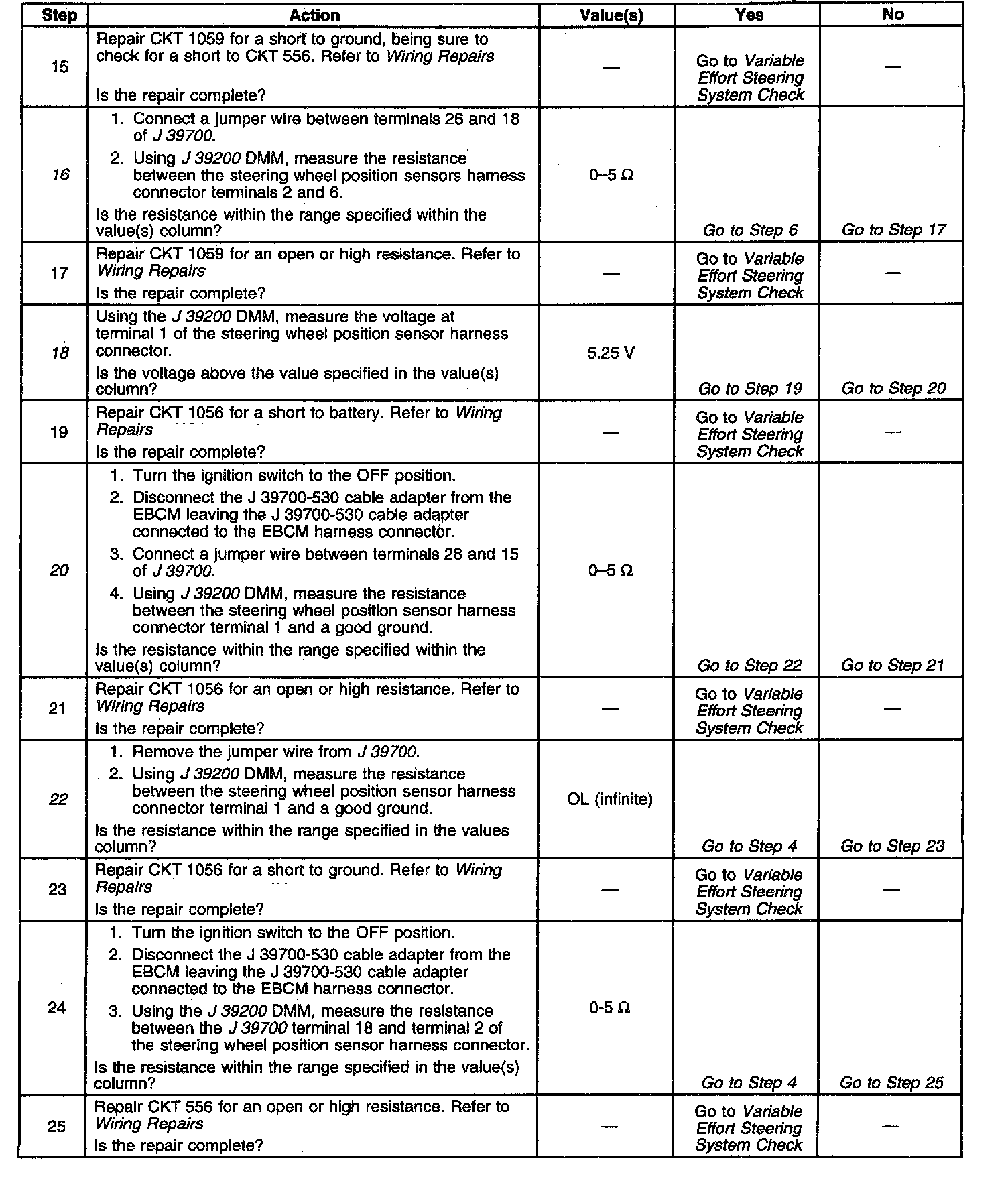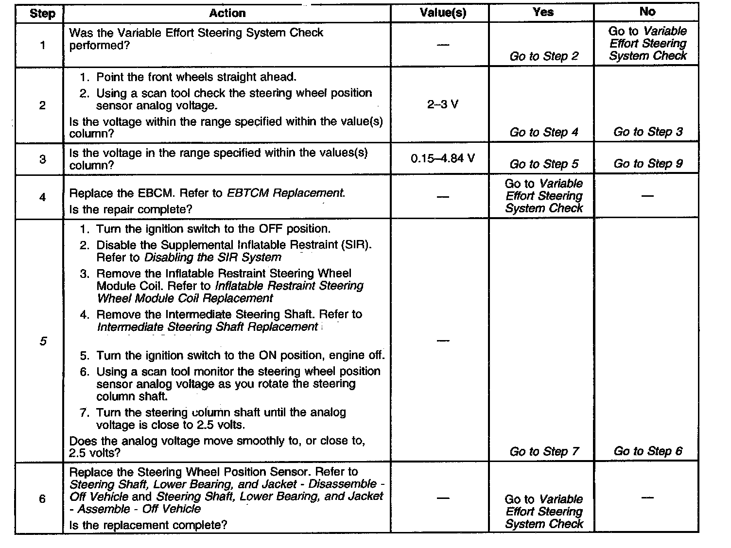 - The steering wheel position sensor analog output voltage falls outside the 0.15 - 4.84 V range.