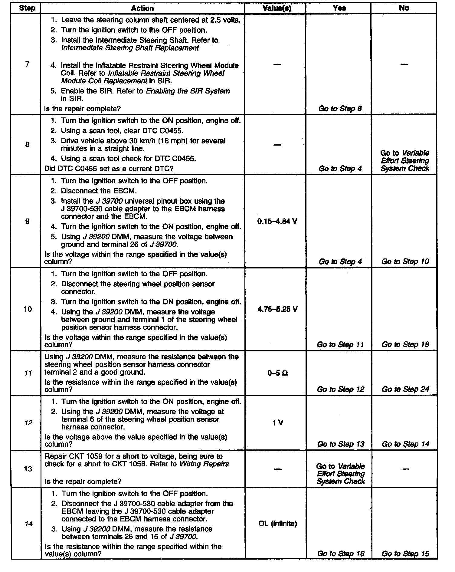 DTC C0455 Steering Position Sensor CKT Malfunction