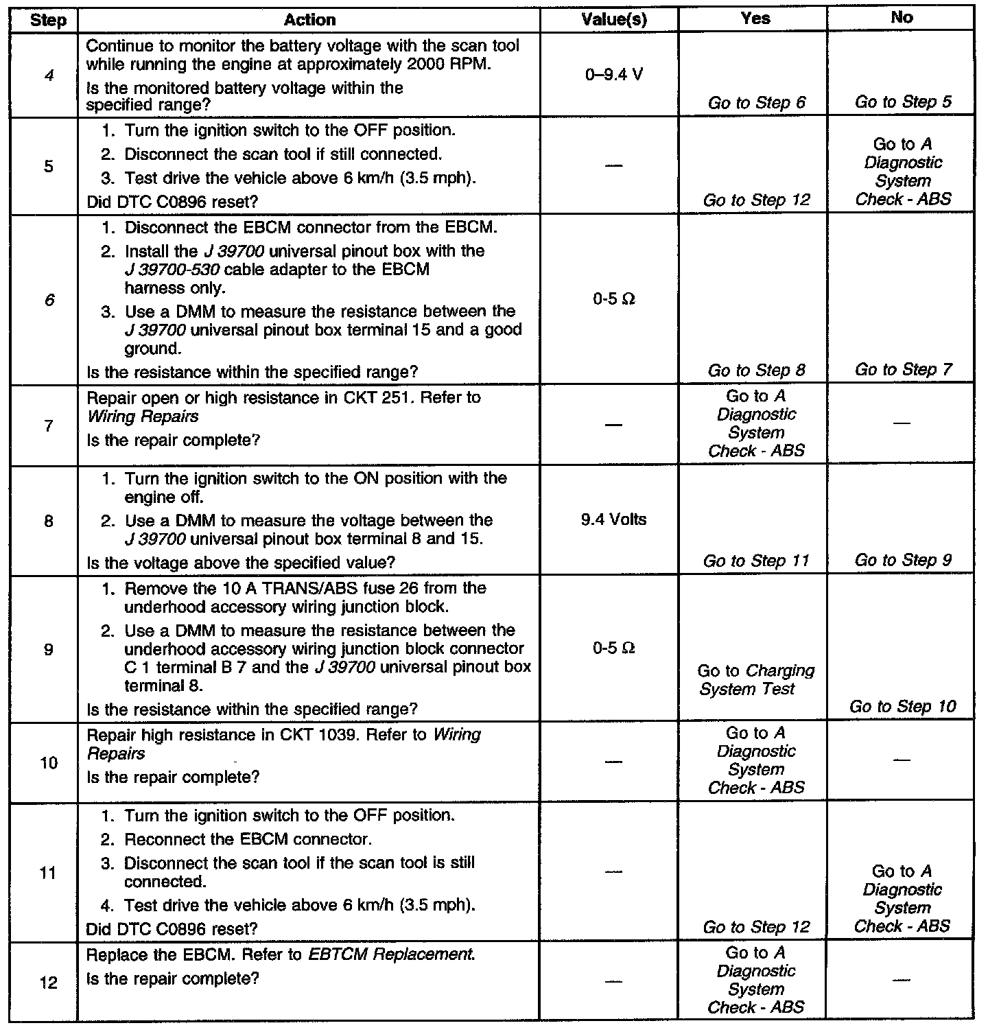 ^ The EBCM operating voltage at terminal 8 falls below 9.4 volts out of ABS/TCS control, or 8.8 volts during ABS/TCS control.