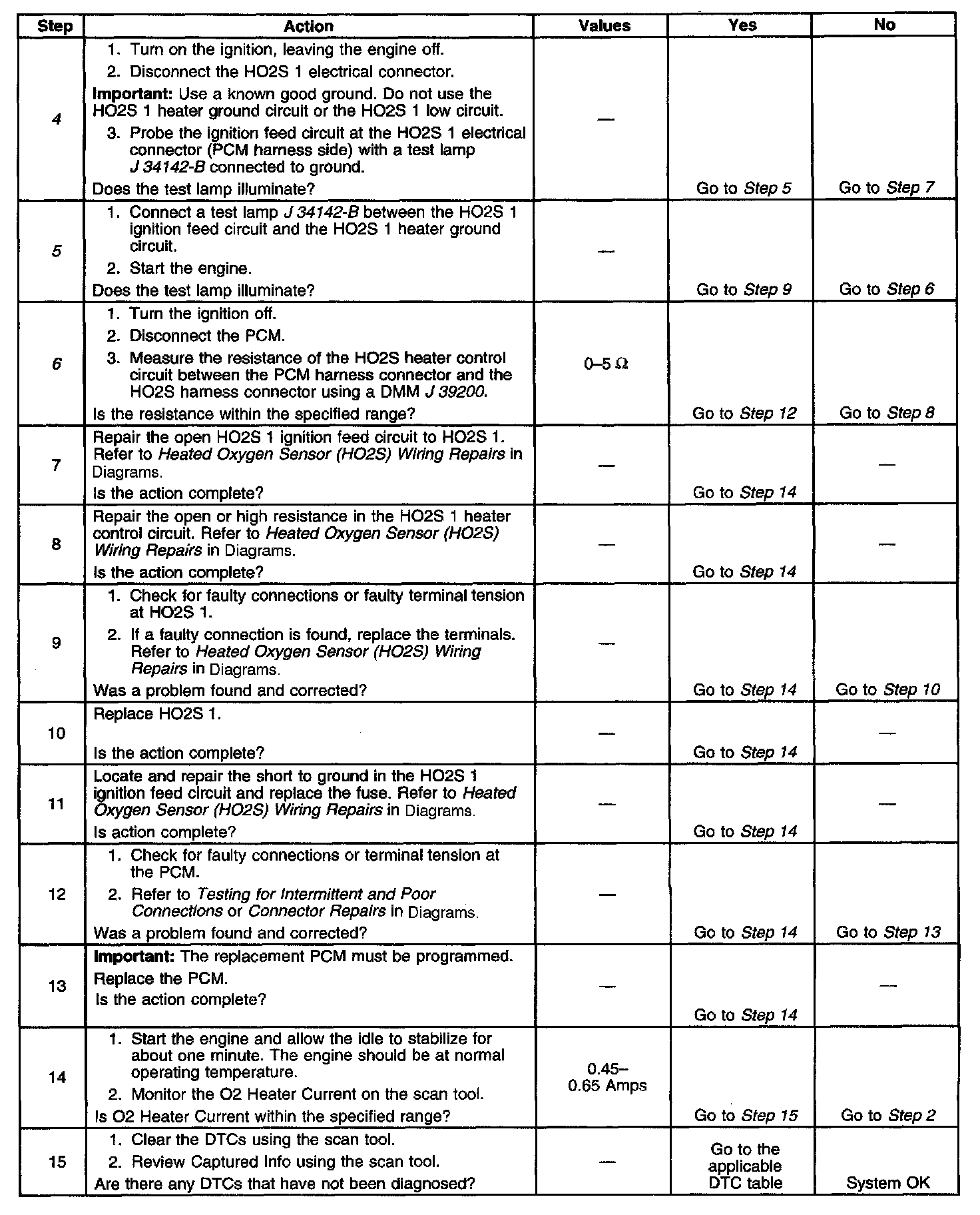 4. Ensures that the ignition feed circuit to the HO2S is not open or shorted. The test lamp should be connected to a good chassis ground, in case the HO2S low or HO2S heater ground circuit is malfunctioning.